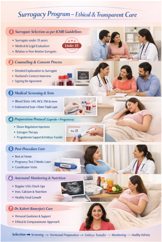 The lady first indicates her willingness to become a surrogate mother. It is ensured that she understands the